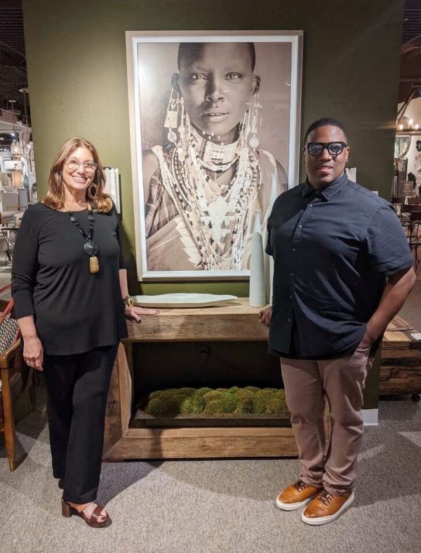Amy Lynn and Nile Johnson standing in front of the Revelation African Princess Framed Art